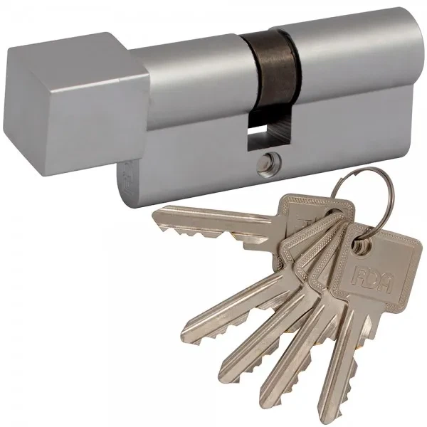 Дверний циліндр (серцевина) RDA Квадратний Англійський 35*35мм поворотник/ключ Хром матовий