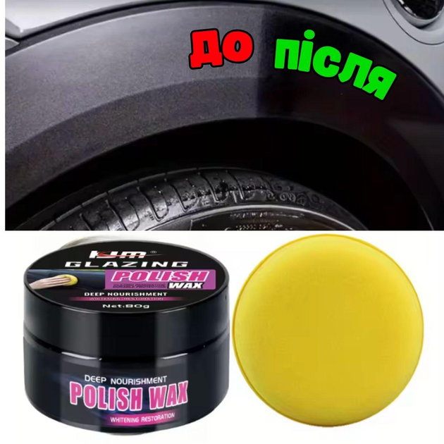 Чорнитель для пластику та гуми, універсальний віск поліроль для авто