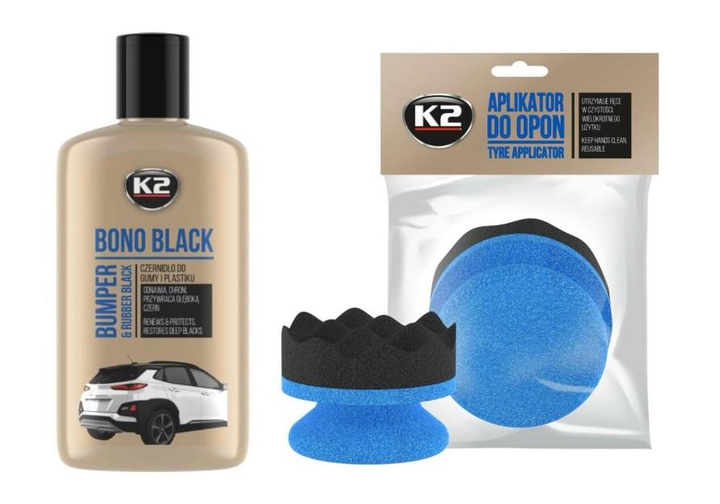 Набір для чорніння шин, гуми K2 (засіб Bono black 250ml + губка - аплікатор)