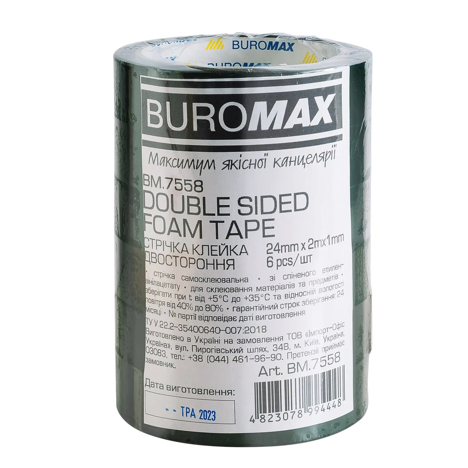 Стрічка клейка двостороння, на пінній основі, 24 мм х 2 м, чорна, 6 шт. в упаковці