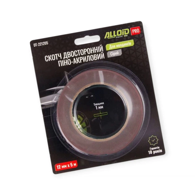 Скотч 2-х сторонній піно-акрилова основа для молдингів 5м х 12мм х 1мм сірий Alloid PRO