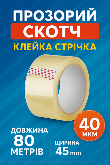 Скотч прозрачный 80 метров, 45 мм - клейкая лента упаковочная