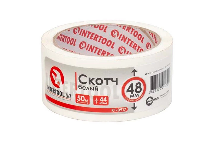 Скотч Intertool 48мм х 50м х 44мкм білий (KT-0917)