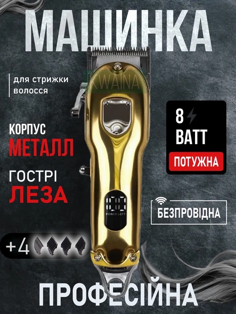 Машинка для стрижки волосся та бороди, бездротова, LED-дисплей, насадки в комплекті 3/6/9/12 мм, акумулятор 1500мА·год, заря