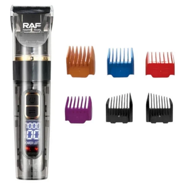 Акумуляторна машинка для стрижки RAF 4019 з дисплеєм та 6 насадками. Тример для волосся та бороди.Чорна