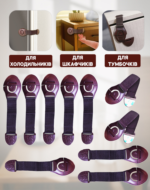 Набор Замок блокіратор тканевий універсальний на меблі від дітей Kids 10 шт. Коричневий