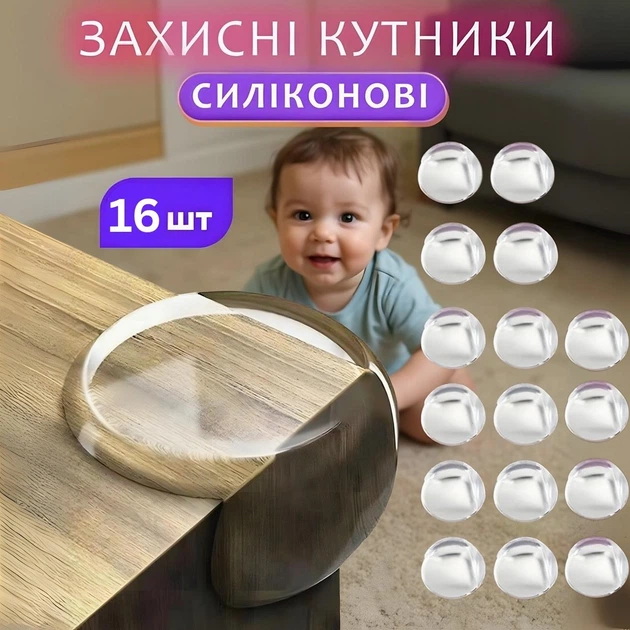 Набір силіконові захисні накладки на меблеві кути Kids Guard для захисту дітей від ударів і пошкоджень прозорі куточки 16 шт