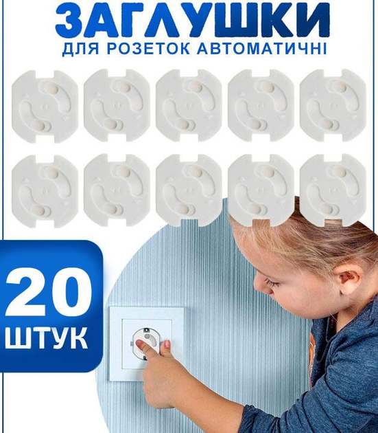 Набір Заглушки для розеток автоматичні захист на розетку від дітей Kids Guard Білі 20 шт