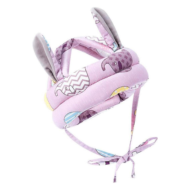 Дитячий м'який протиударний шолом для захисту голови (Фіолетовий, з принтом слона, з вушками)