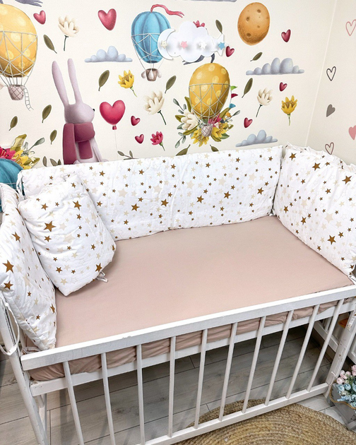 Захист бортики в дитяче ліжечко на 4 сторони 120*60 см бампер в дитяче ліжечко білий зірки