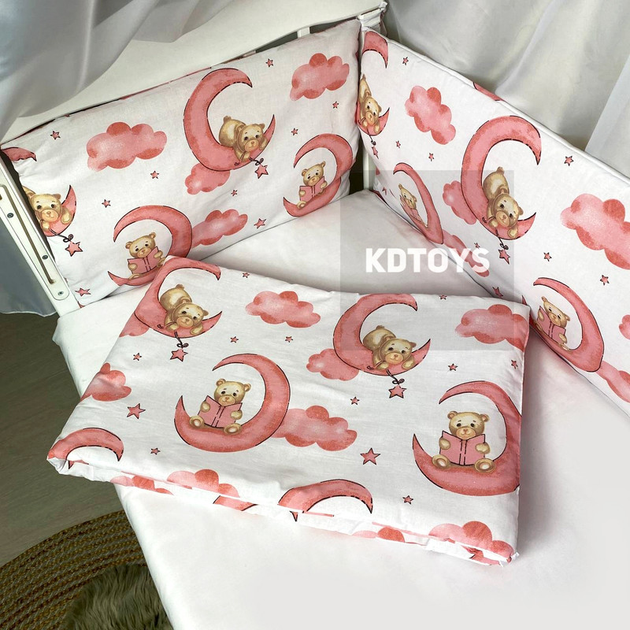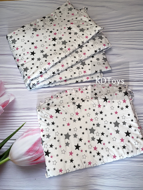 Захист бортики в дитяче ліжечко на 4 сторони 120*60 см бампер в дитяче ліжечко білий з рожевим розсип Зірочки