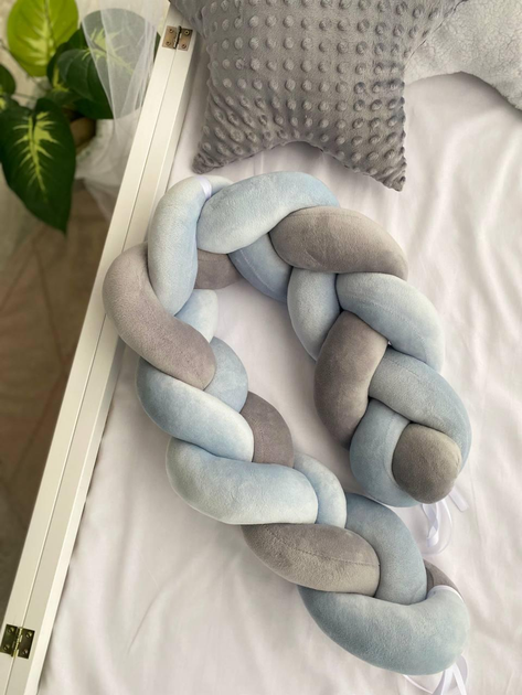 Бампер-коса захист у дитяче ліжечко блакитно-сірий 3-плетіння 100 см