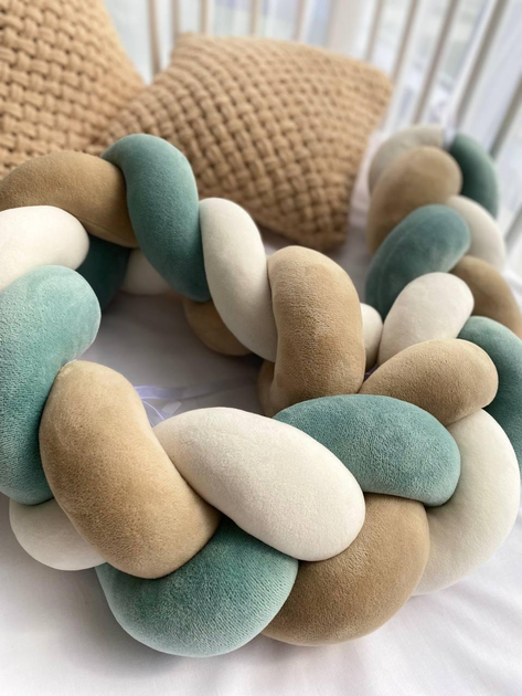 Бампер-коса захист у дитяче ліжечко бежево-молочно-оливковий 3-плетіння 100 см