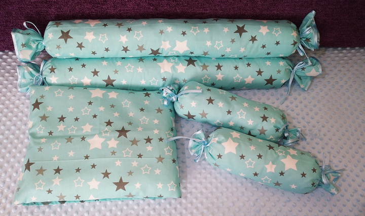 Комплект в ліжечко валики + подушка ведмедики на блакитному