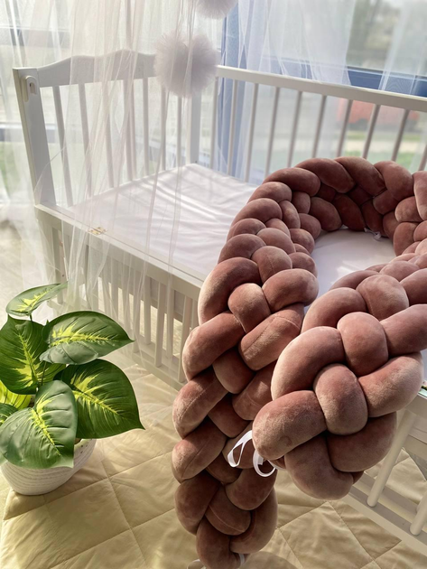 Бампер-коса захист у дитяче ліжечко пудра темна 4-плетіння 100 см