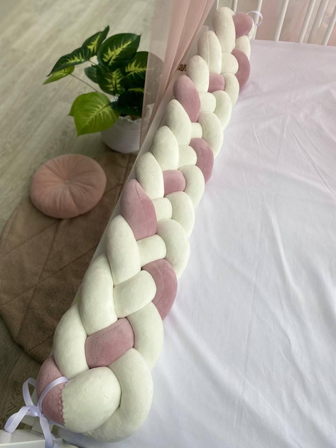 Бампер-коса захист у дитяче ліжечко білий +пудра 4-плетіння 100 см