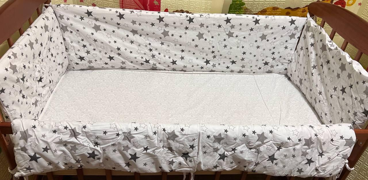 Захист бортики для дитячого ліжечка на 4 сторони на зав'язочках Зіркове небо Білий