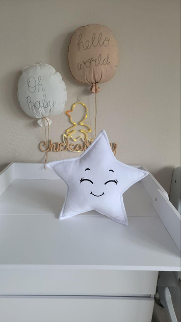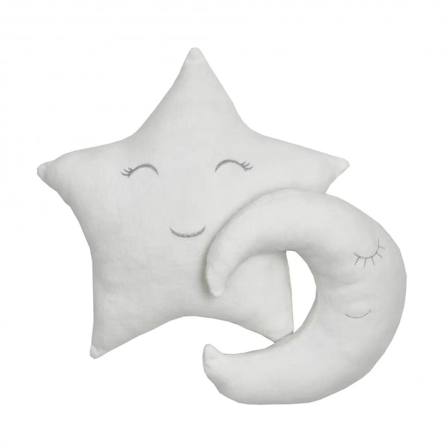 Декоративна подушка Спляча Зірочка з вишивкою, бортик в ліжечко, білий велюр, реквізит на фотосесію, декор дитячої кімнати