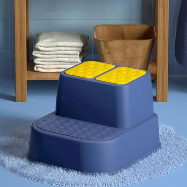 Дитяча підставка-сходинка 27х32х36 см (табурет для ніг у ванну, туалет, умивальник пластиковий) Синьо-Жовта