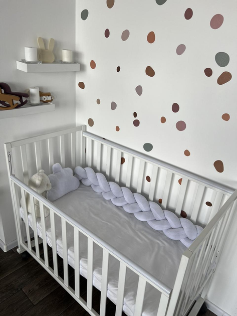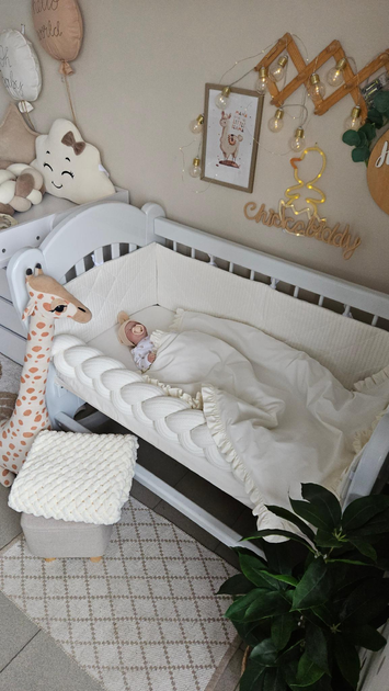 Декоративна косичка бампер, Бортик захист в ліжечко, 3 прядки, молочна в’язка, на 1 сторону ліжечка, 120 см довжина, із зав’