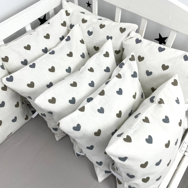 Бортики подушки 6 шт зі зйомними наволочками Oh My Kids "Сердечки" фланель