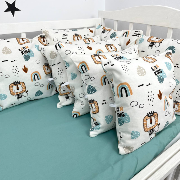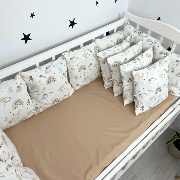 Бортики подушки зі зйомними наволочками 6 шт Oh My Kids "Веселки" фланель