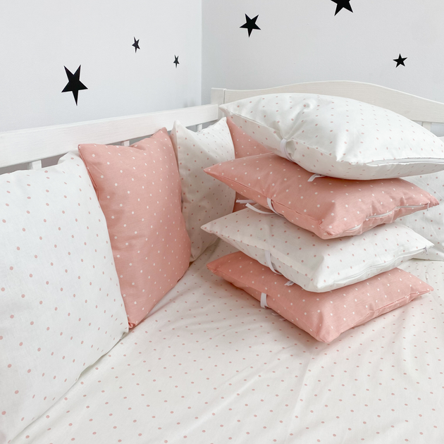 Бортики 6 шт зі зйомними наволочками Oh My Kids "Dots" пудровий