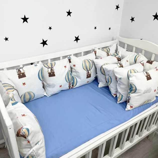 Бортики подушки 6 шт зі зйомними наволочками Oh My Kids "Повітряні кульки" фланель