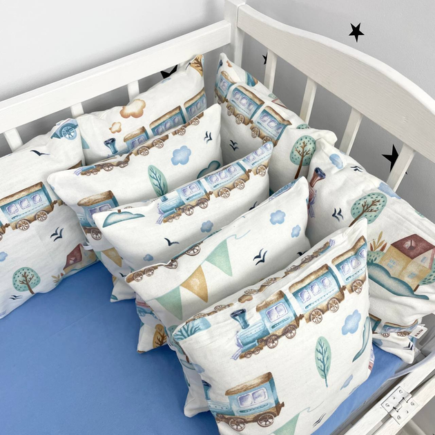 Бортики подушки в дитяче ліжечко 6 шт Oh My Kids "Паровозики" фланель