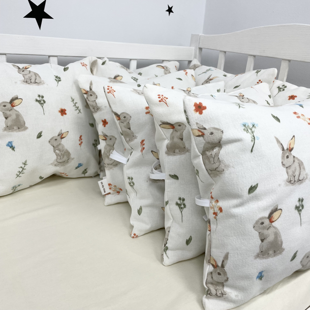 Бортики подушки 6 шт зі зйомними наволочками Oh My Kids "Зайчики" фланель