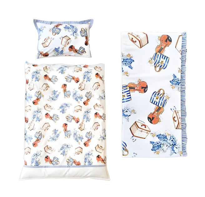 Бортик у дитяче ліжечко + постільна білизна NL Baby 841 Білий/Синій тристоронній