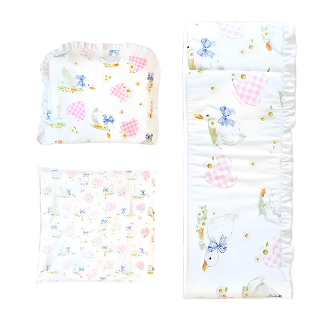 Бортик у дитяче ліжечко + постільна білизна NL Baby 865 Білий/Рожевий тристоронній