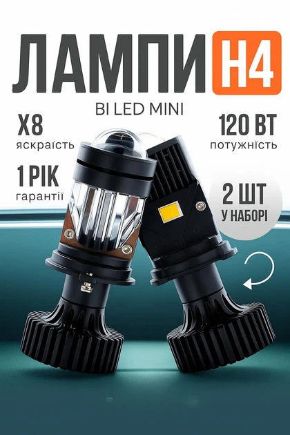 Комплект світлодіодних лінз Bi-led H4 Y5MT Mini 6000K 10000Lm 9-16V (35862)