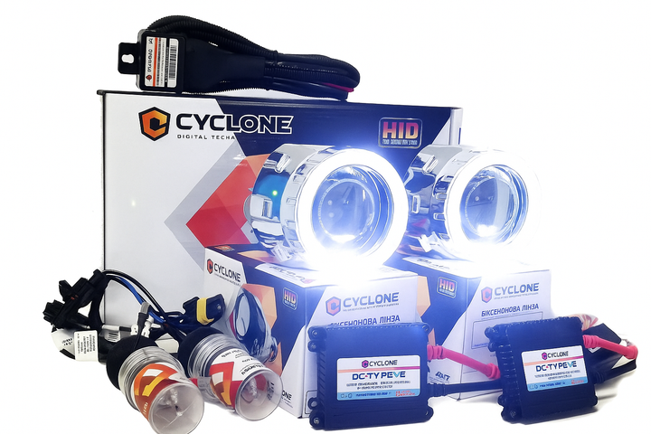 Біксенонові лінзи Cyclone G5 з ангельськими глазками та ксенон комплект із проводкою