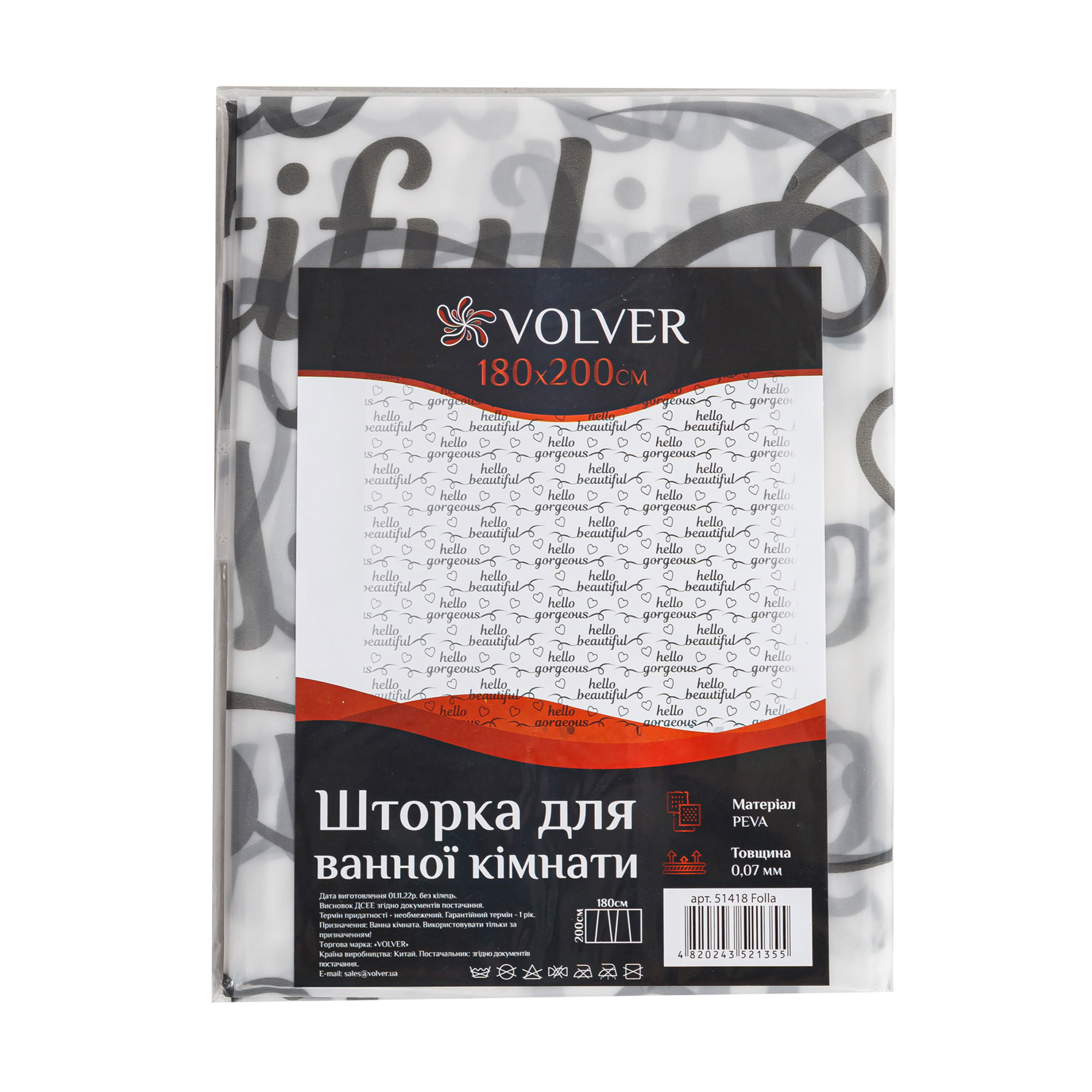 Шторка для ванної кімнати Volver Folla, 180*200 см (51418)
