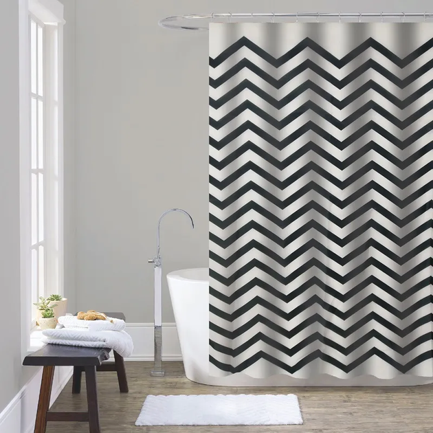 Штора для ванної з поліестеру Zerix SCT-007-180x200 [Візерунок чорно-білий] [ZX4988]