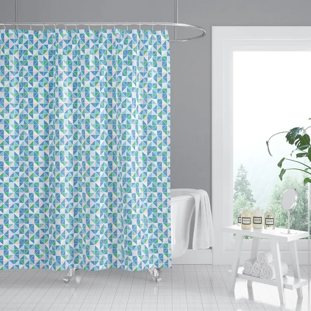 Штора для ванної з поліестеру Zerix SCT-008-180x200 (Візерунок зелено-синій) (ZX4986)