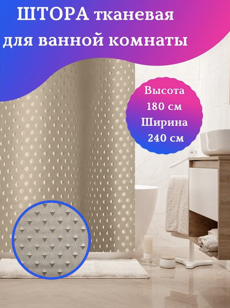 Шторка у ванну кімнату 240х180 см турецька якісна з поліестеру світлокоричнева Піка