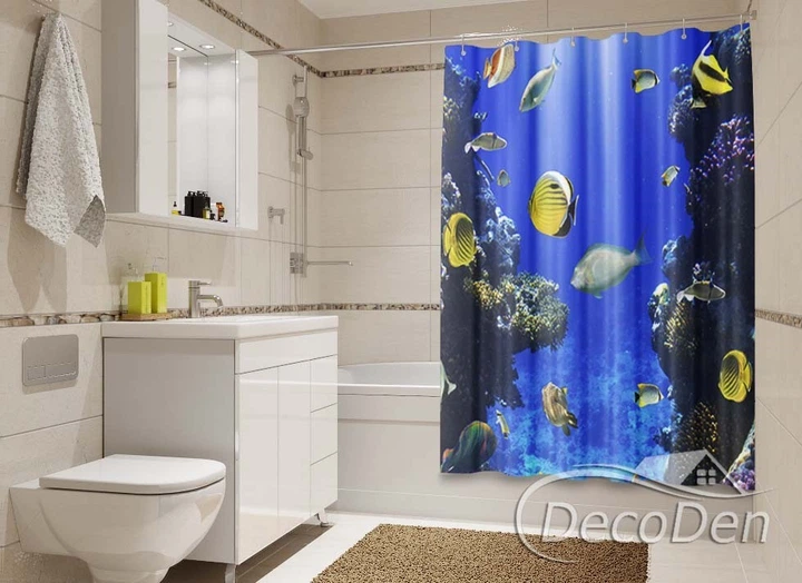 Фото Шторка для ванної кімнати PHOTODECOR "Екзотичні рибки на морському дні"
