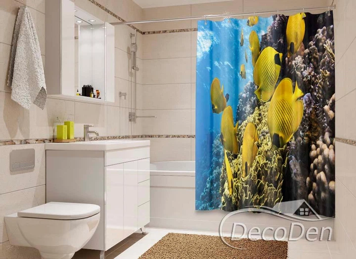 Фото Шторка для ванної кімнати PHOTODECOR "Жовті рибки та корали"