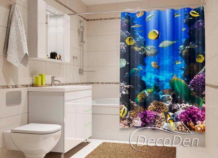 Фото Шторка для ванної кімнати PHOTODECOR "Рибки на морському дні в коралах"