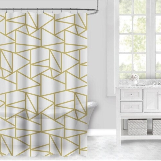 Шторка для ванної та душу 180x180 см водовідштовхувальна, штора "Абстракція золотих трикутників" для душової та ванної кімна
