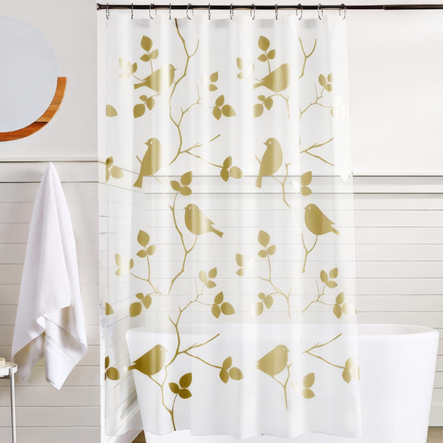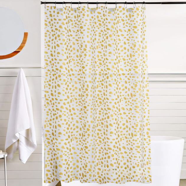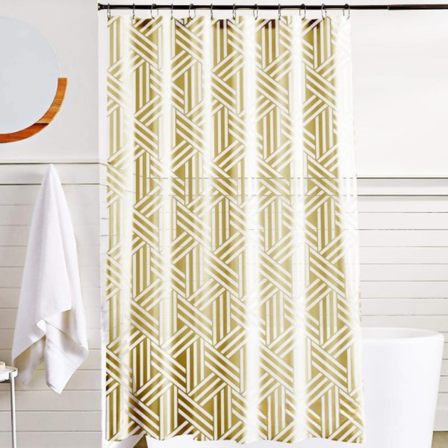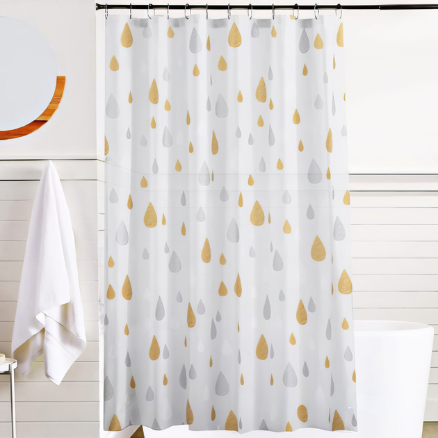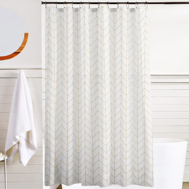 Шторка для ванної та душу 180x180 см, штора для ванної та душової кімнати з PEVA з пластиковими гачками, біла із золотистим