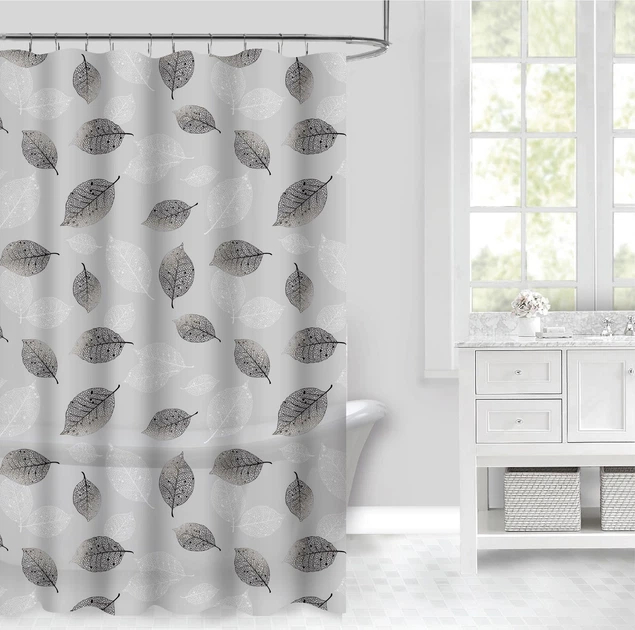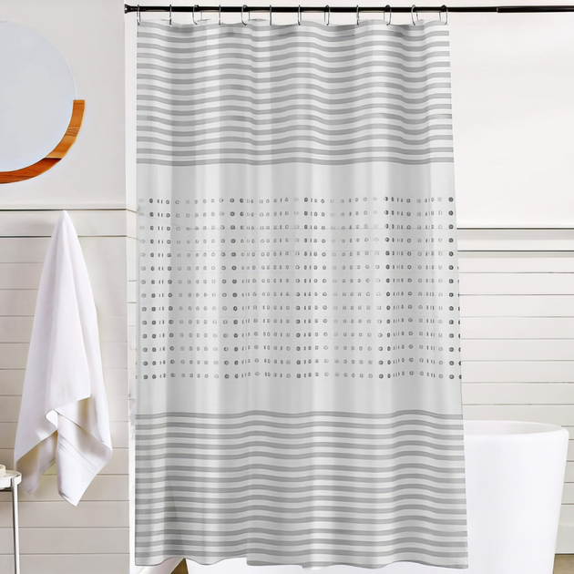 Шторка для ванної та душу 180x180 см, штора для ванної та душової кімнати з PEVA з пластиковими гачками, прозоро-біла зі срі