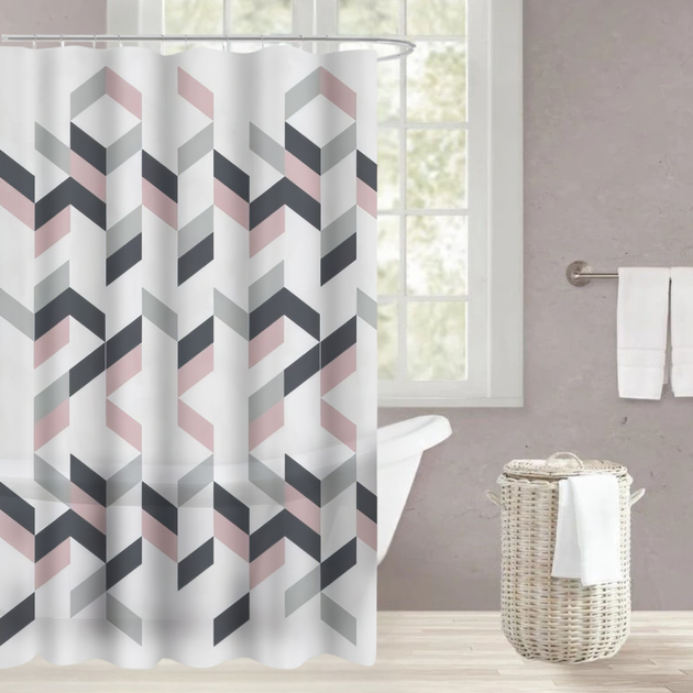 Шторка для ванної та душу 180x180 см водовідштовхувальна, штора "Chevron" для душової та ванної кімнати матеріал PEVA з плас