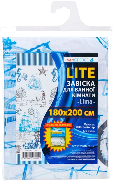 Шторка - фіранка для ванної VANSTORE Lima 63012 180х200