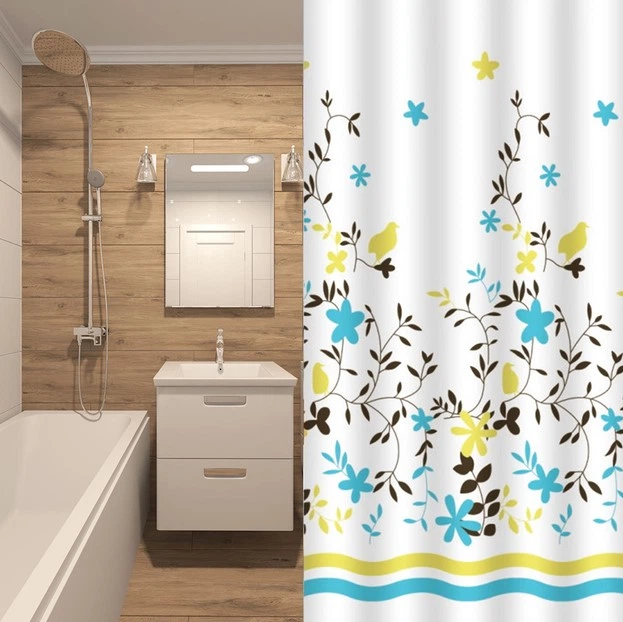 Штора для ванной из полиэстера Zerix SCT-008-180x200 (Узор зелено-синий) (ZX4986)