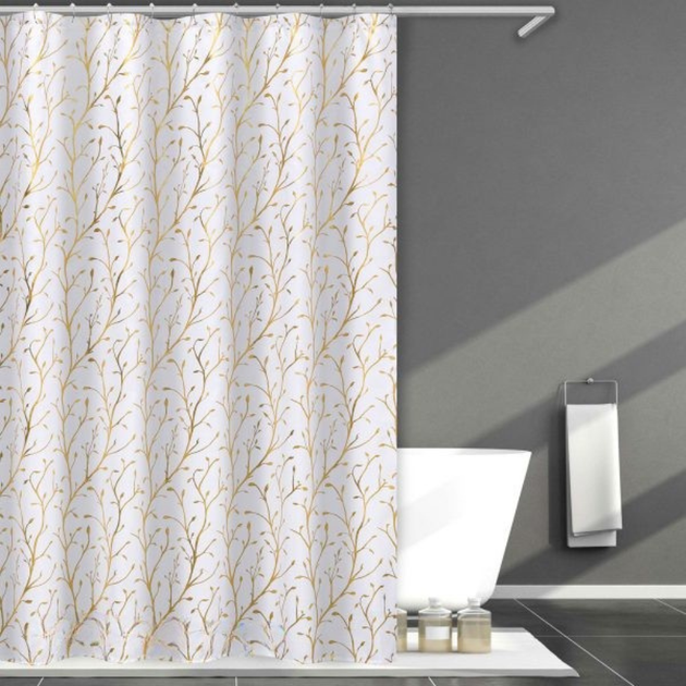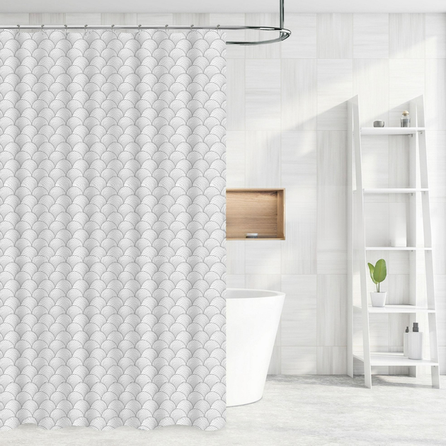 Набір шторка для ванної та душу 180x180 см, штора для ванної та душової кімнати з поліестеру з металевими гачками, біла зі с