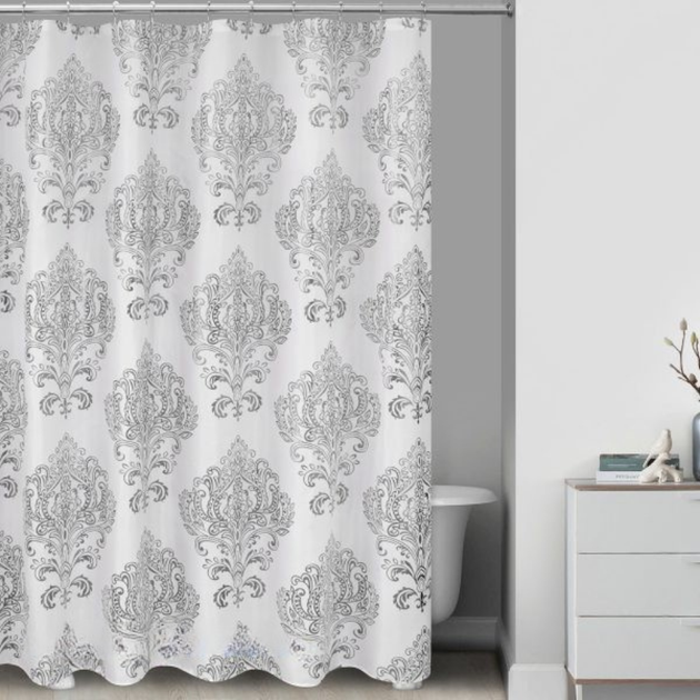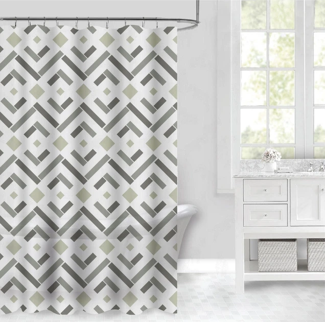 Набір шторка для ванної та душу 180x180 см, штора для ванної та душової кімнати з поліестеру з металевими гачками, біла зі с