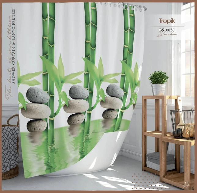 Шторка 180*200 см для ванної кімнати поліестер з декором Bamboo